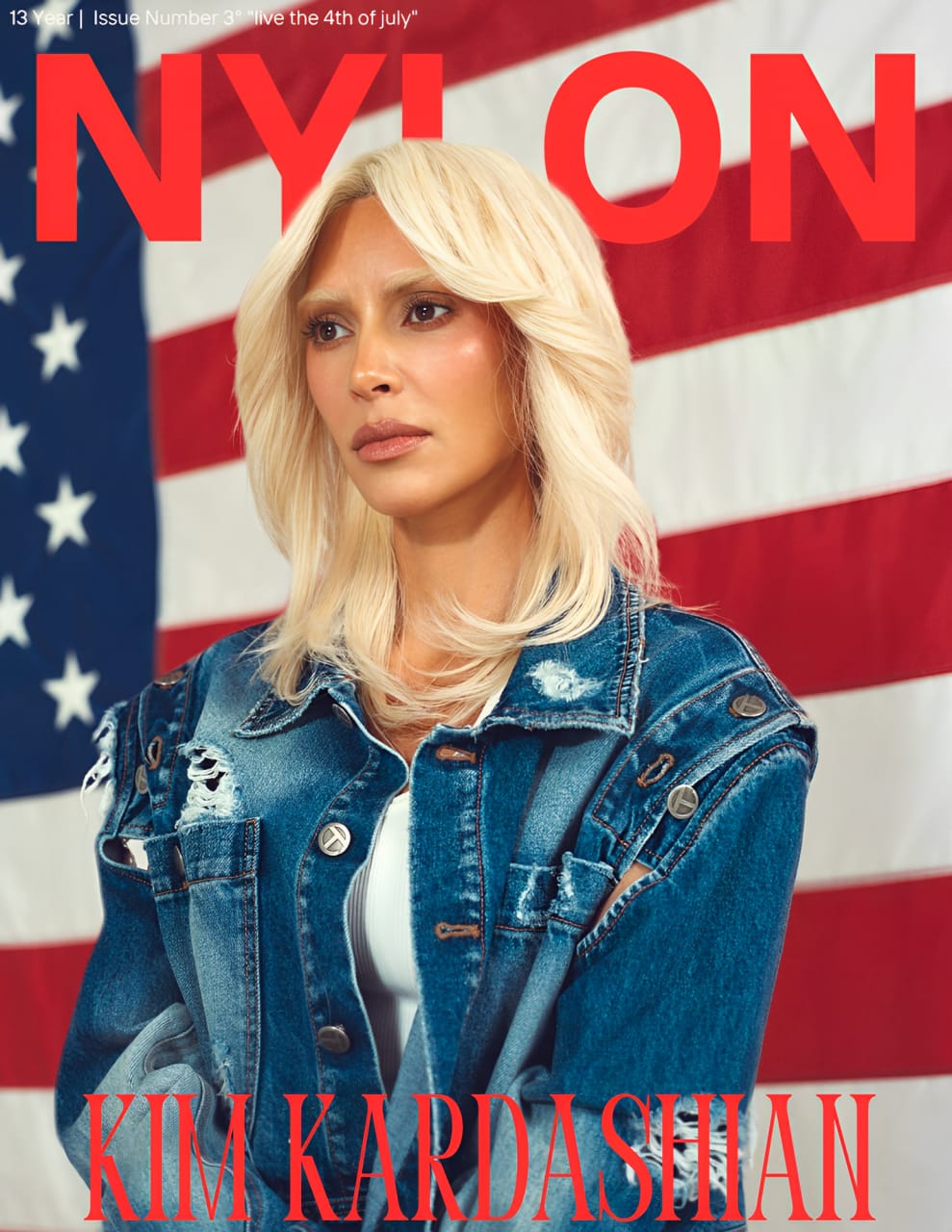 KIM KARDASHIAN: Ótimo, estou apenas pintando meu cabelo de loiro novamente para esse ensaio. Estou fazendo minhas raízes.